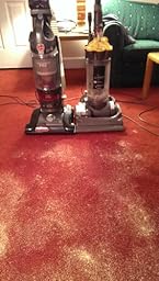 Carpet cleaning efficiency: I sprinkled white corn meal on a dark burgundy rug. I made one pass at moderate speed with each vacuum. Neither vacuum cleaned up all the corn meal, but the Dyson left somewhat more corn meal on the floor. See customer photos above for testing results. Hoover wins.